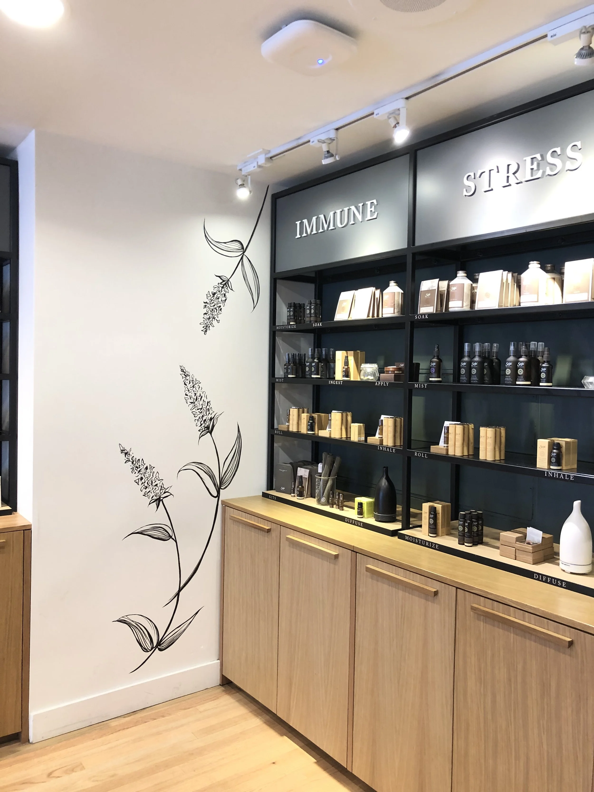 Botanical Mural. Botanical Line mural for Saje Natural Wellness, located on West 4th, Kitsilano, Vancouver Inquire about custom murals